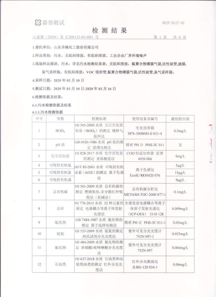 2020年第一季度监测报告(制萘车间)