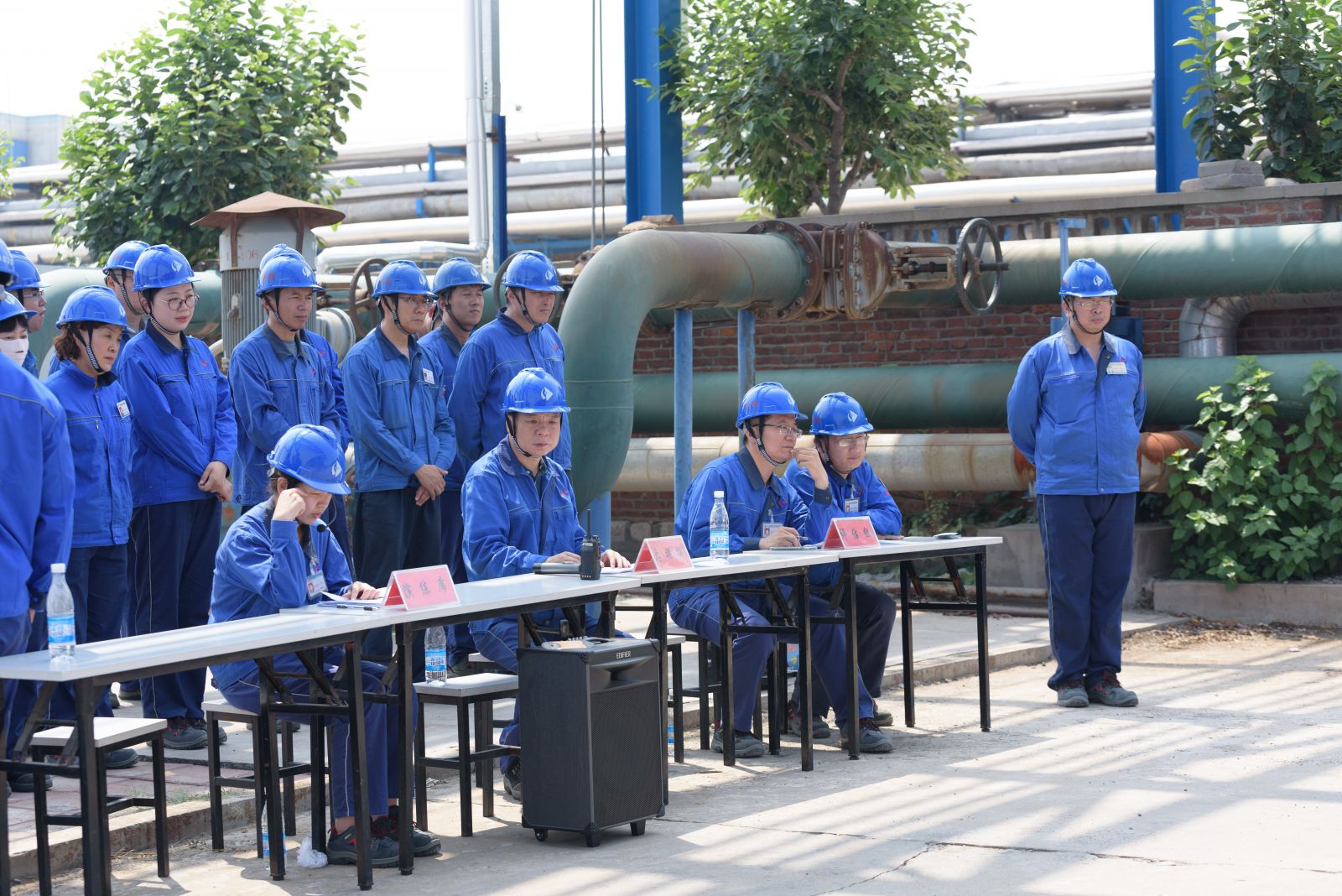 现场观摩的单位有树脂一车间、三车间、制萘车间、中心化验室、储运车间、电仪车间等部门职工代表。