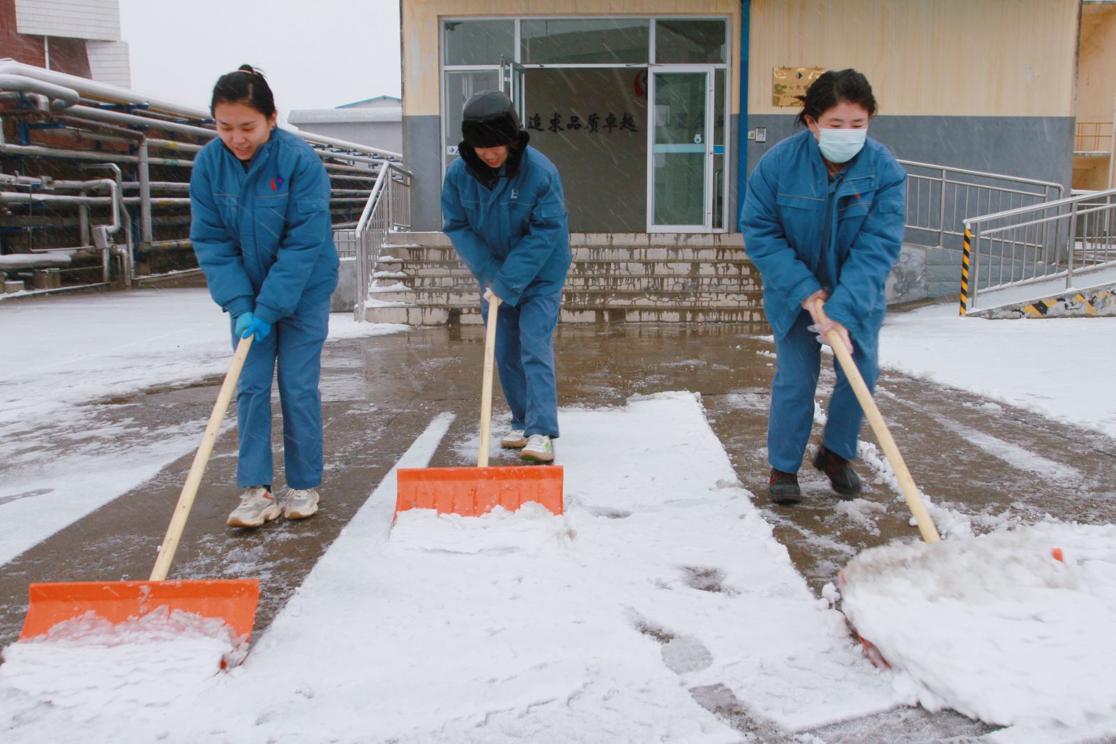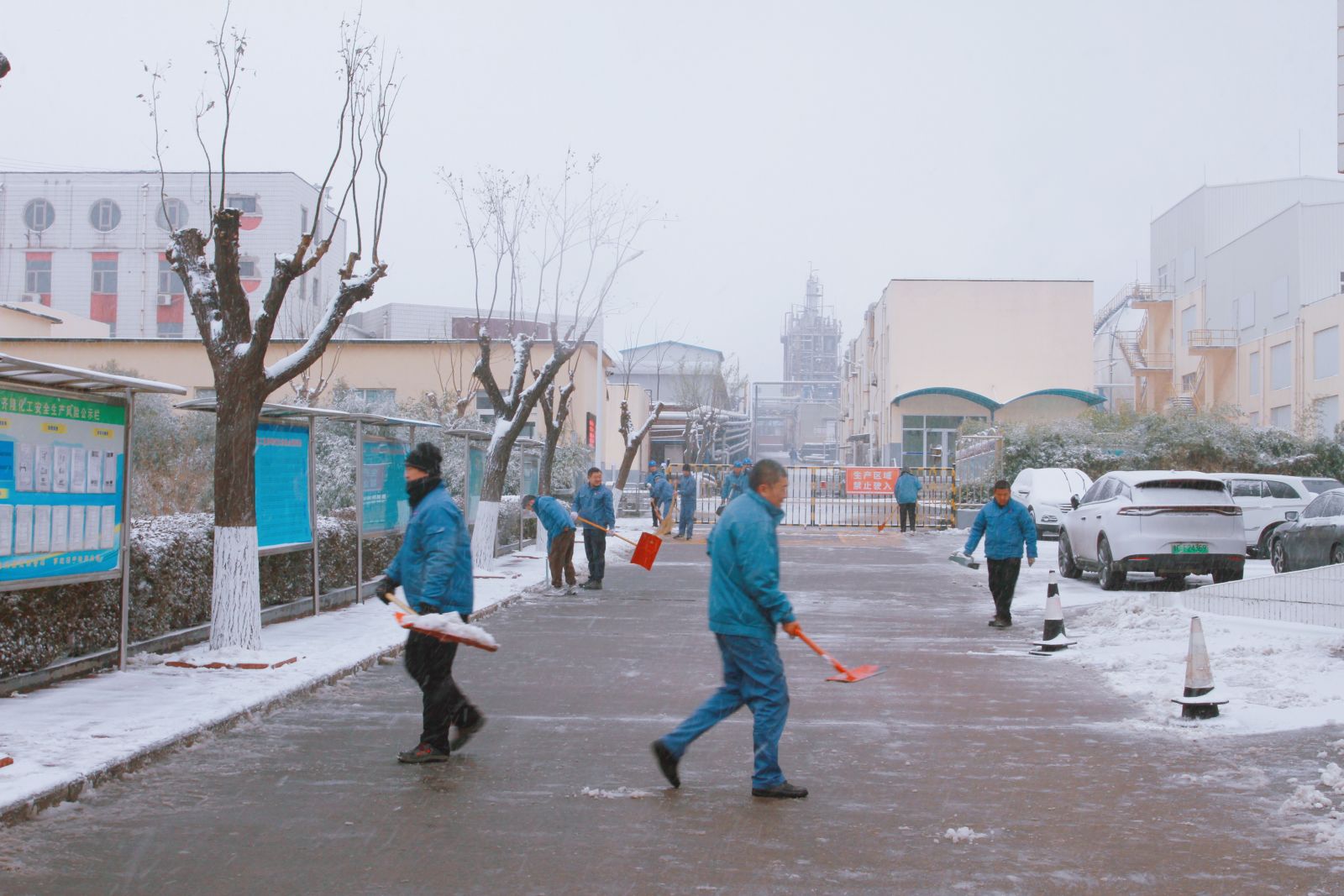 为最大程度地消除安全隐患,同时确保主要路段和员工车辆行驶安全有序,各单位职工拿着铁锹、铲雪板等工具全面清理车间院内、生产岗位、厂区责任区等地积雪。寒风劲吹,依然挡不住大家高涨的热情,党员们发挥模范带头作用,不畏严寒,齐心协力,经过近2个小时的通力合作,目前运行岗位及主要责任区道路积雪基本清理完毕,保障了生产正常运行,也为广大职工开辟了一条条洋溢着暖暖温情的安全之路。大家分工明确,充分体现了公司广大青年团员强烈的责任感和团结合作精神,有效发挥了先锋突击队作用。据山东气象局预测未来4~7天,我省还有一次冷空气过程并伴有雨雪和大风降温天气,请大家注意防范。