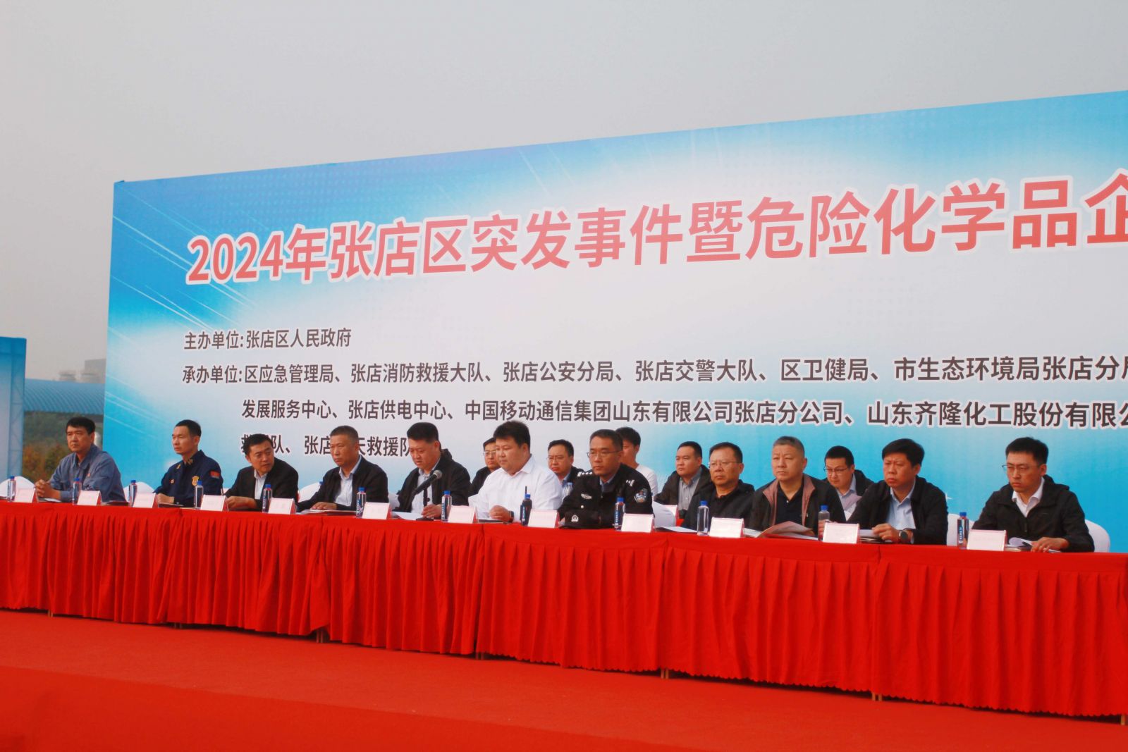 本次应急演练由张店区政府主办,区应急管理局、张店消防救援大队、张店公安分局、张店交警大队、区卫健局、市生态环境局张店分局、张店化工产业园发展服务中心、张店供电中心、中国移动通信集团山东有限公司张店分公司、古天乐太阳集团城、淄博红狼应急救援队、张店蓝天救援队承办。