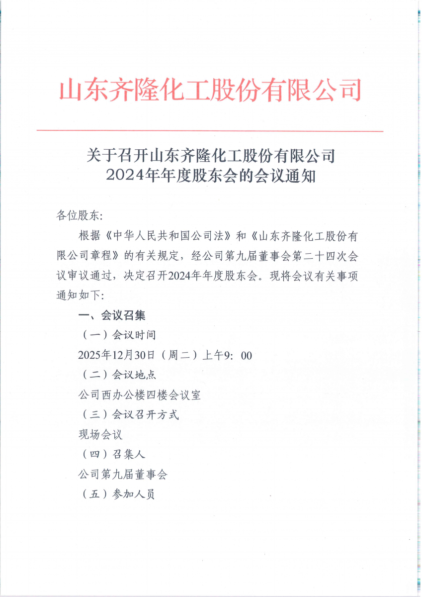 古天乐太阳集团城 | 关于召开公司2024年年度股东会的会议通知